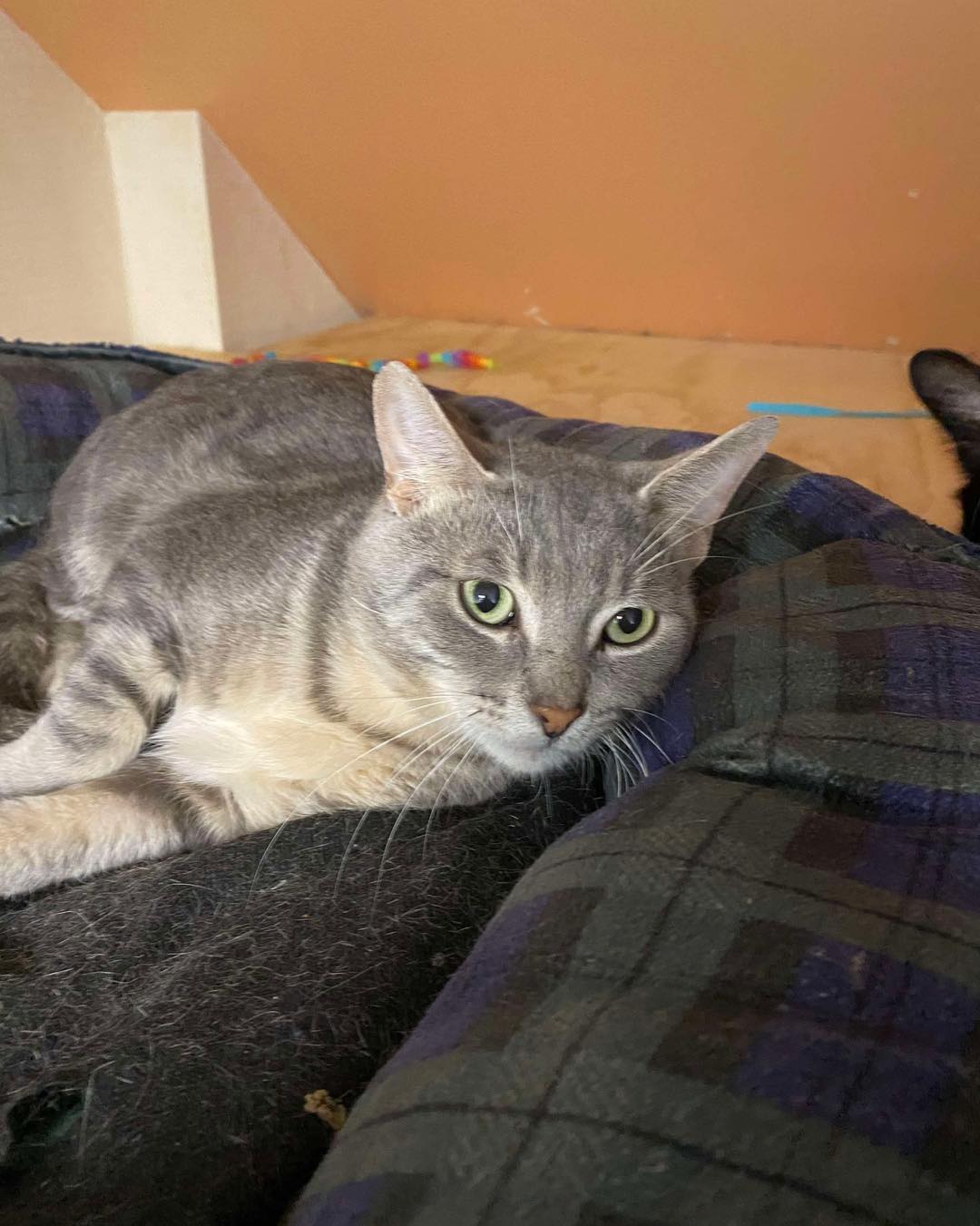 Stretch is a male kitty who was born on July 23, 2023. He’s a sweet boy, but he is a bit timid and hides at first. He would do best with another cat in the home, which would help to bring him out of his shell. This beautiful kitty is looking for his furrever home and would love to be adopted.